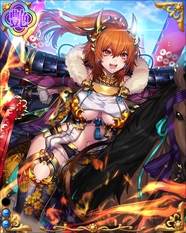| コメント | 「あとさき考えるのは好きじゃないからな!!」 武田信玄家臣。武田家の戦いでは常に先陣を務め戦場を駆け回った。ナガシノの戦いでも奮戦するが織田、徳川連合軍鉄砲隊の銃弾に倒れる。 |