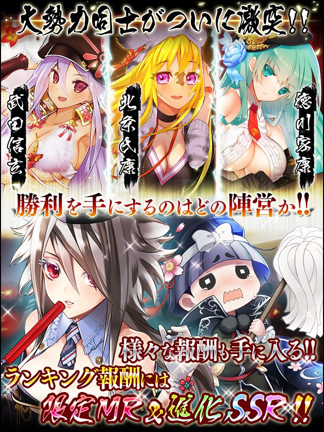 家康「東海は我らの庭!!そろそろ徳川の飛躍の時であろう」 信玄「張り切ってるね!!でも信玄ちゃんに挑むのはまだ早いんじゃないかな!!」 氏康「北条もいるからねっ!!結束の力みせちゃうよ!!」 みの吉「白熱の戦いが期待できますよ、これは!!誰が勝ってもおかしくないです!!」