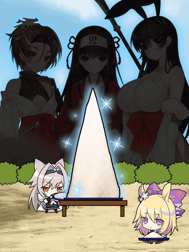 | 4日目 | 景綱「勝てませんでしたね、謙信様……じゃあ、元気が出るように応援です♪」 謙信「景綱の応援は……元気がでるな、朝信も頼む」 朝信「では……朝信が応援いっぱいしちゃうにゃん♪……いかがでしょうか??」 謙信「……景綱、もう一度頼む」 |